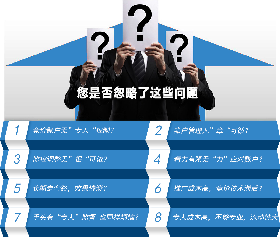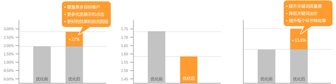 由于竞价代运营账户数量限制,账户维护中达到了一对一的问题解决,每个客户的账户优化都能达到最佳状态,为客户提高了 广告的质量,降低了平均点击费;